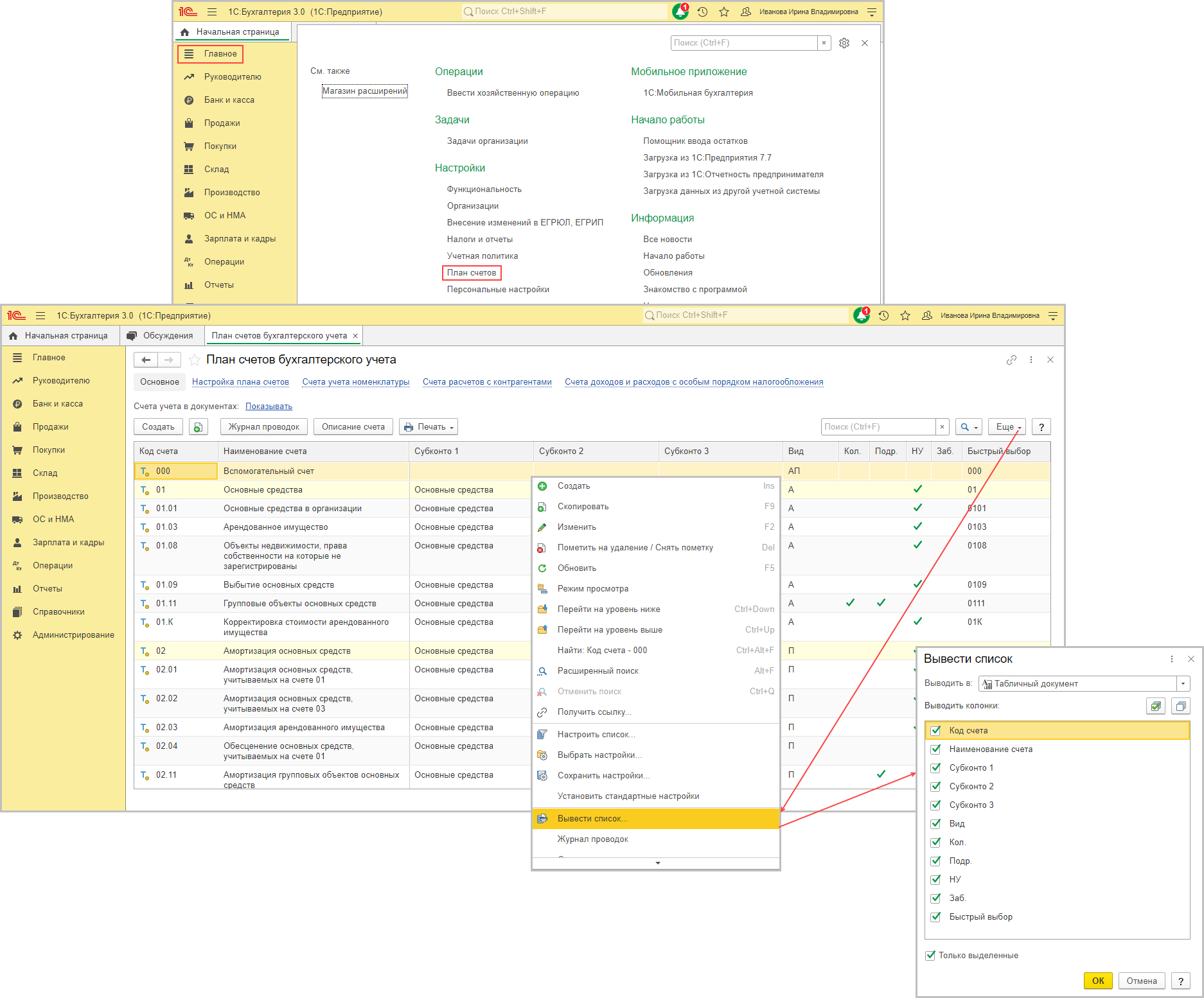 распечатайте план счетов.